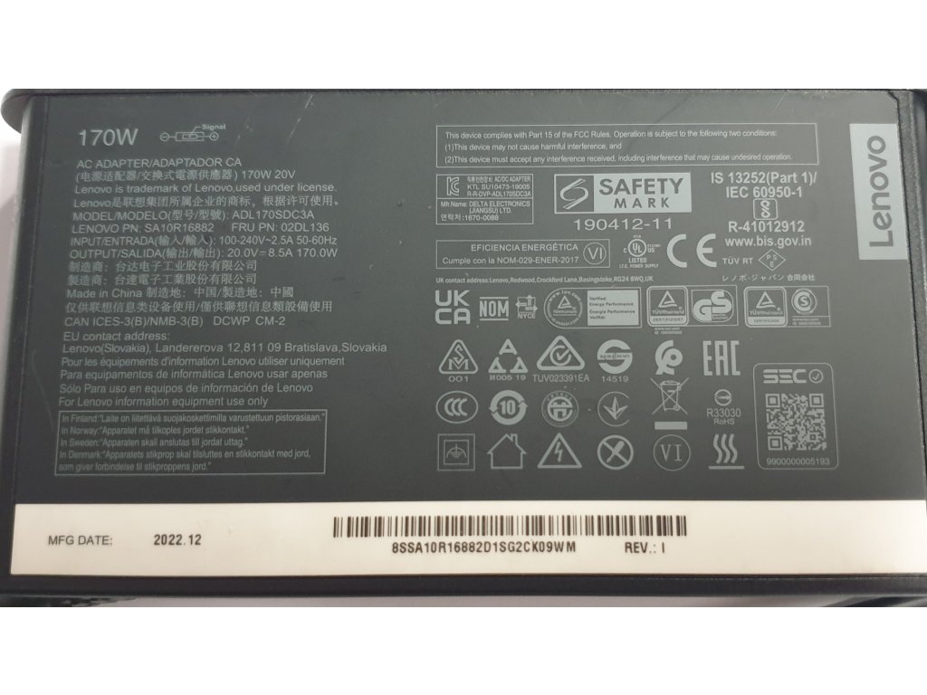 AC adaptér ADL170SDC3A 20V / 170W z Lenovo IdeaPad Gaming 3 15IAH7