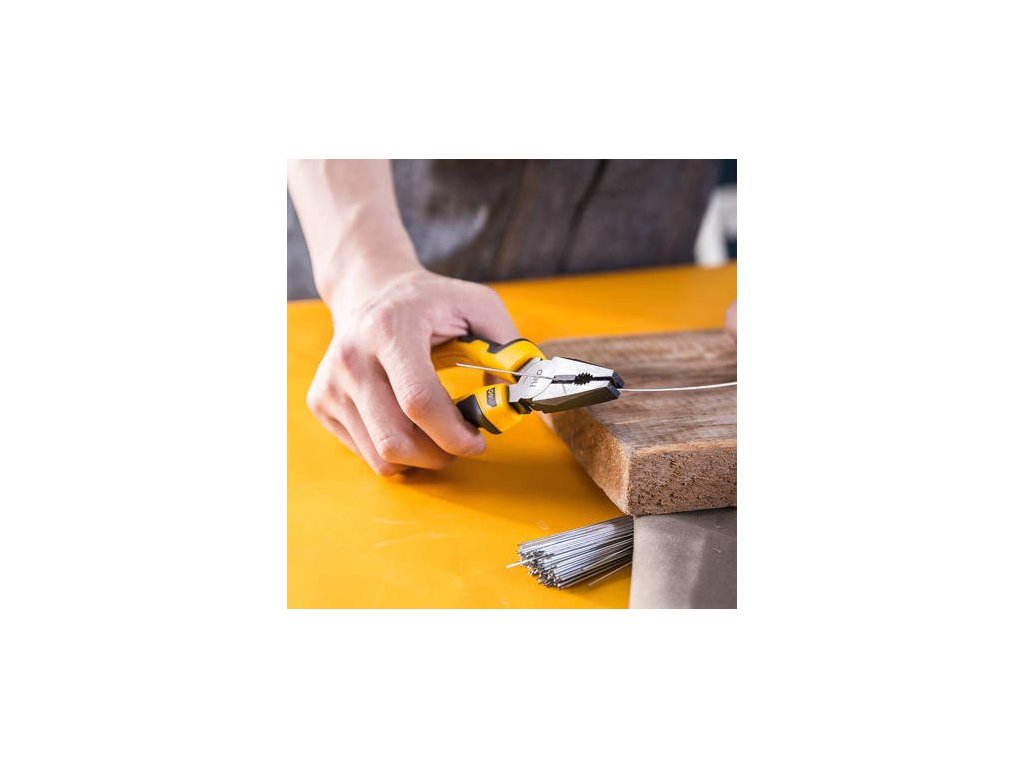 Univerzální kleště patří mezi nejoblíbenější nástroje. Díky svým speciálně tvarovaným čelistem mají několik funkcí. Plochý konec slouží k držení a stlačování, zatímco ostrý okraj je vhodný pro stříhání a ohýbání. Jsou kované z vynikající kvality uhlíkové oceli, což je vyznačuje vysokou pevností a dlouhou životností. Kleště mají tvrdé stříhací hrany s vysokou tvrdostí 54-62HRC a vysokou stříhací schopností, které jsou frekvenčně kalené. Ergonomická rukojeť dvoubarevného provedení je vyrobena z ekologicky šetrného materiálu a dobře padne do ruky, čímž předchází únavě i při dlouhodobém používání.