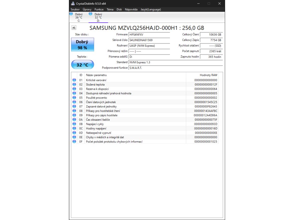 - Rozhraní: PCI Express 3.0 ×4 (NVMe)