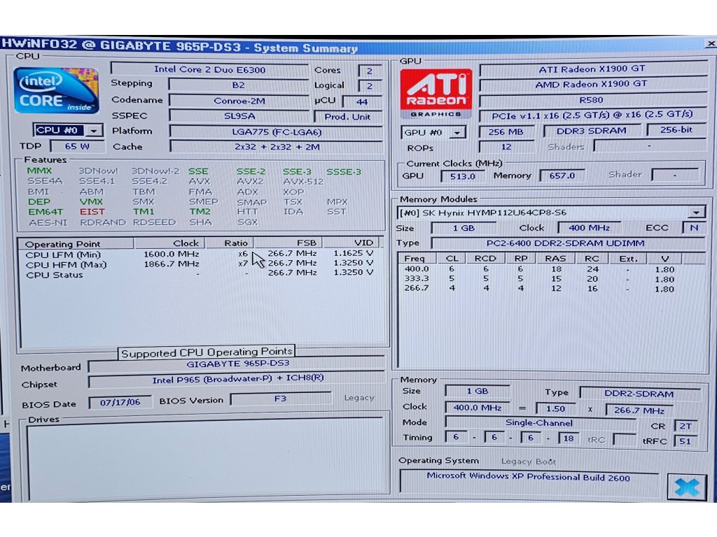Základní deska Gigabyte GA-965P-DS3 - Intel P965 + E6300 + 1GB DDR2