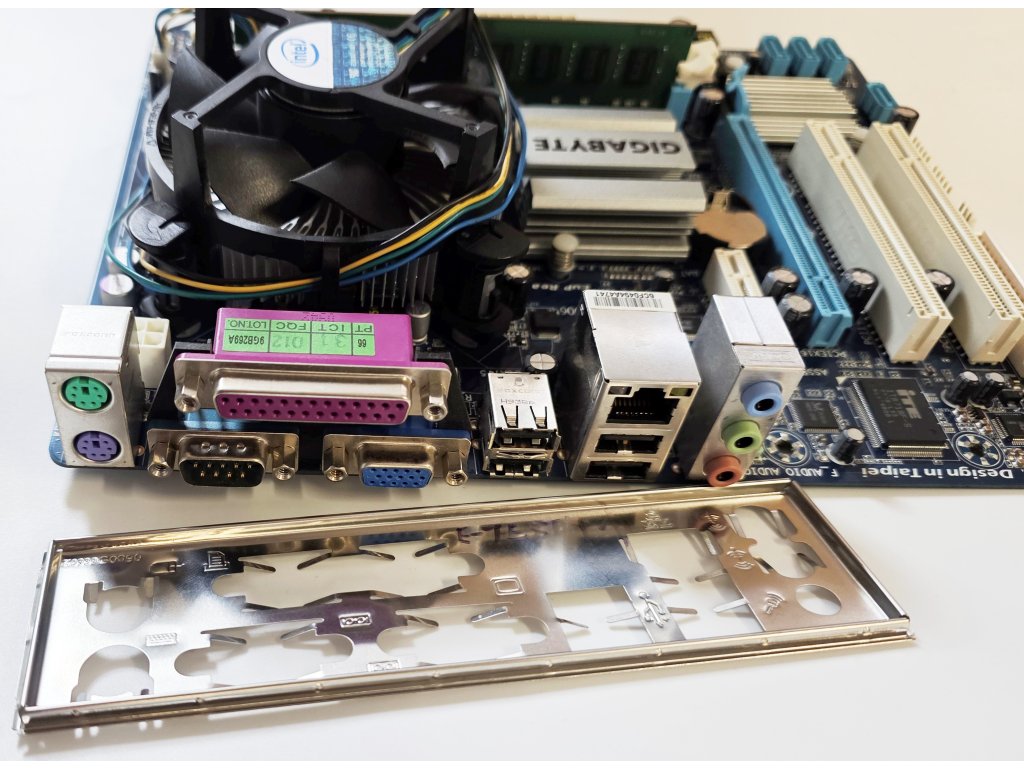 - Osazená základní deska s CPU, RAM a chladičem