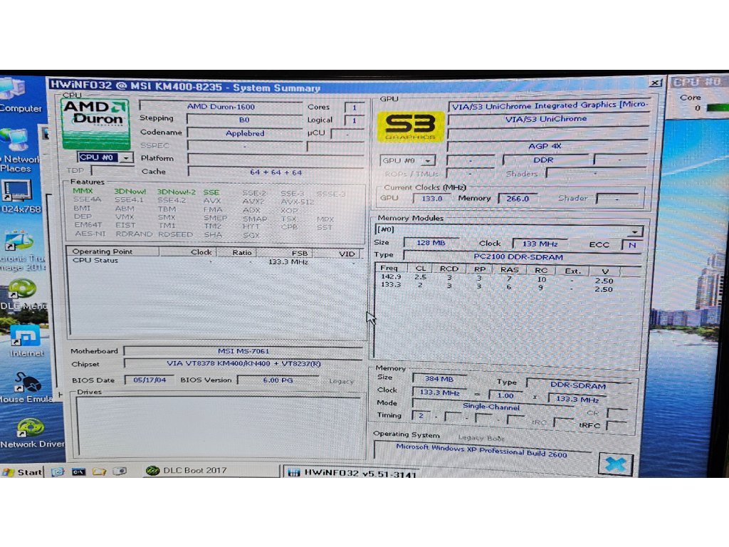Základní deska MICROSTAR KM4M-V (MS-7061) ViaKM400 + Duron 1600 +384Mb
